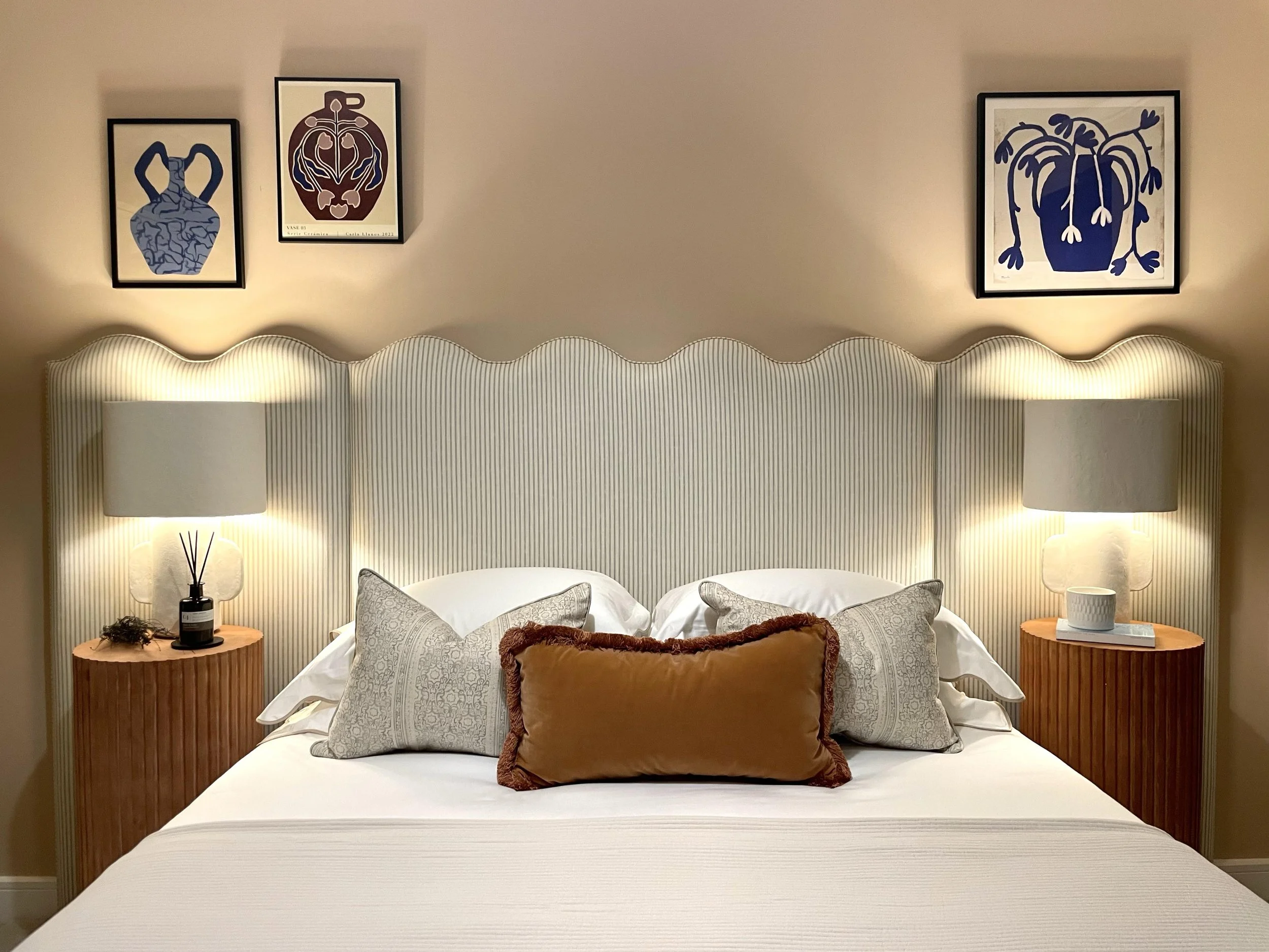 The concept focuses on a contemporary, trend-driven aesthetic that combines warm neutral bases with playful colour accents, layered textures and modern artwork. Soft peach, sage green and warm timber tones introduce character and personality while maintaining a calm and welcoming atmosphere.
